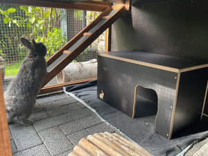 In jedem artgerechten Kaninchengehege sollten auch Rückzugsorte (Häuser, Buddelkisten und noch viel mehr) vorhanden sein. Diese und weitere Kaninchenbeschäftigungen fertigen wir in liebevoller Handarbeit an. Bei uns finden Sie auch weitere Artikel, auf die Ihre Kaninchen zum Wohlfühlen nicht verzichten möchten, wie Kühlterrassen, Heuraufen, Futterbars und Bälle.
